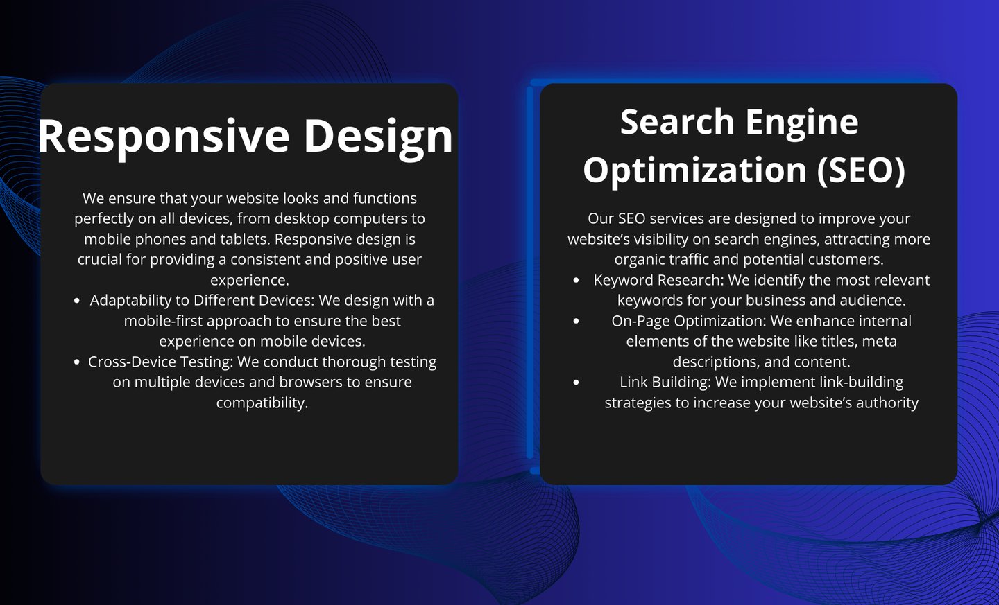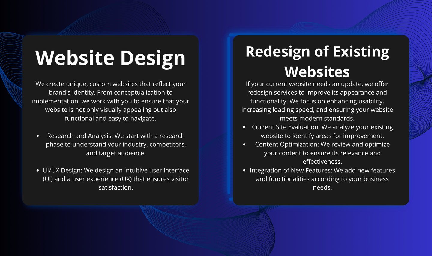 Each of these services is designed to provide added value to your business, helping you stand out in the competitive digital world. We work with you every step of the way to ensure your goals are met and your online presence is strong and effective.